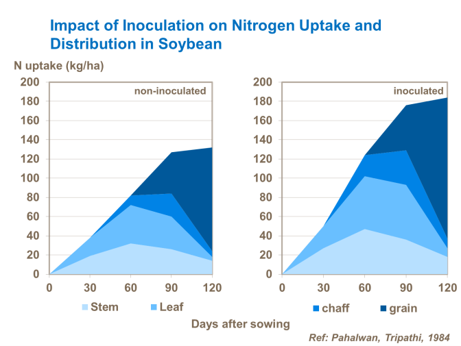 Les bactéries utilisent les photoassimilats des plants, tandis que le soja utilise l’azote fixé par les bactéries pour la synthèse des protéines. Les bactéries fixent le N2 et le convertissent en NH4+, qui est ensuite utilisé par le plant, qui libère les photoassimilats.