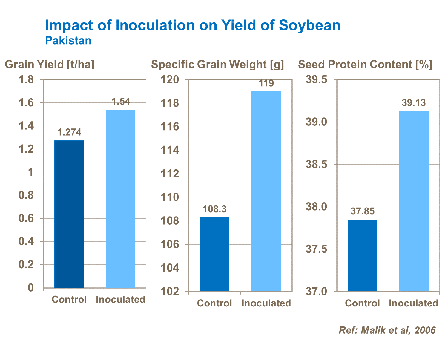 Le soja est capable de faire circuler le N2 dans l’air par le biais de la relation symbiotique avec les bactéries du genre Rhizobium.