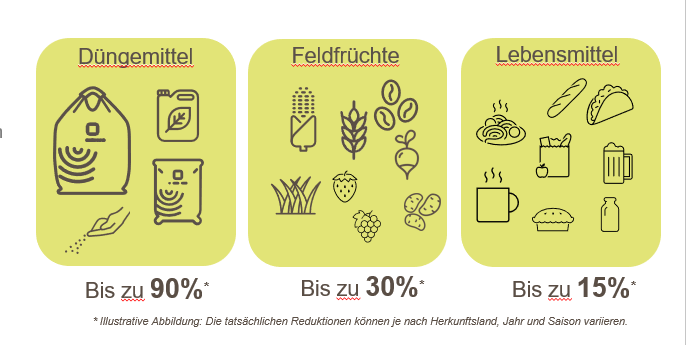 Abb. 1: CO2-reduzierte Dünger können den CO2-Fußabdruck von Lebensmitteln um bis zu 15 % senken.