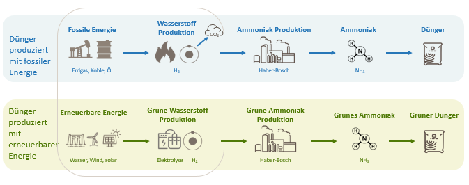 Abb. 2: CO2-reduzierte Dünger werden mit Wasserstoff aus der Elektrolyse produziert