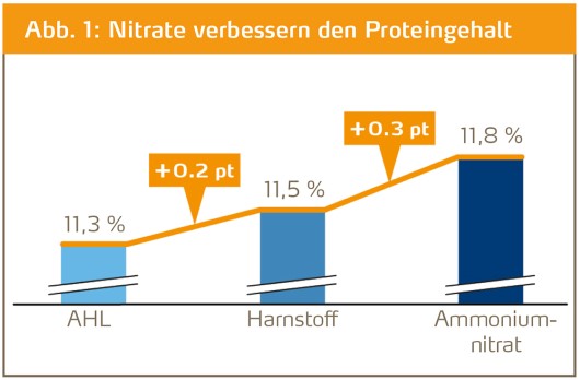 Proteine werden im Korn am Ende des Wachstumszyklus gebildet. Wie viel Proteine gebildet werden, hängt unter anderem von der Sorte, der Wasserverfügbarkeit und der Temperatur ab. Am wichtigsten ist jedoch die Versorgung mit Stickstoff. Geschätzte 80 Prozent des Stickstoffs und damit des Eiweißgehalts der Körner stammen aus den Halmen und Blättern. Er wurde in einer frühen Wachstumsperiode aufgenommen und während der Abreife in die Körner verlagert.